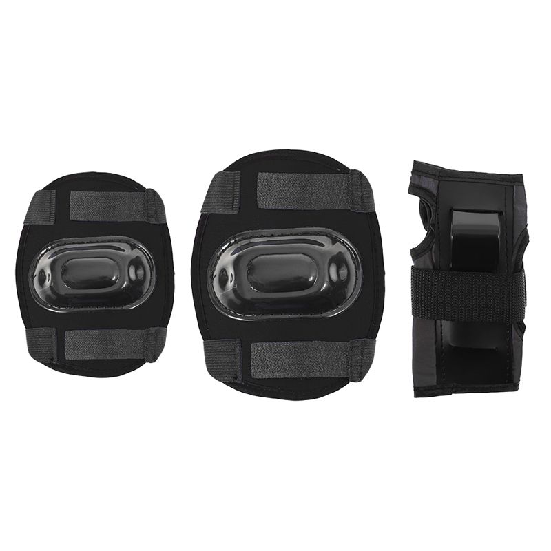 A set of wrist, elbow, and knee pads. Made of high-quality materials, the shell is designed with a strong and lightweight material. All pads feature Velcro closures to keep them securely in place. Designed to provide maximum comfort and protection for wrists, elbows, and knees.