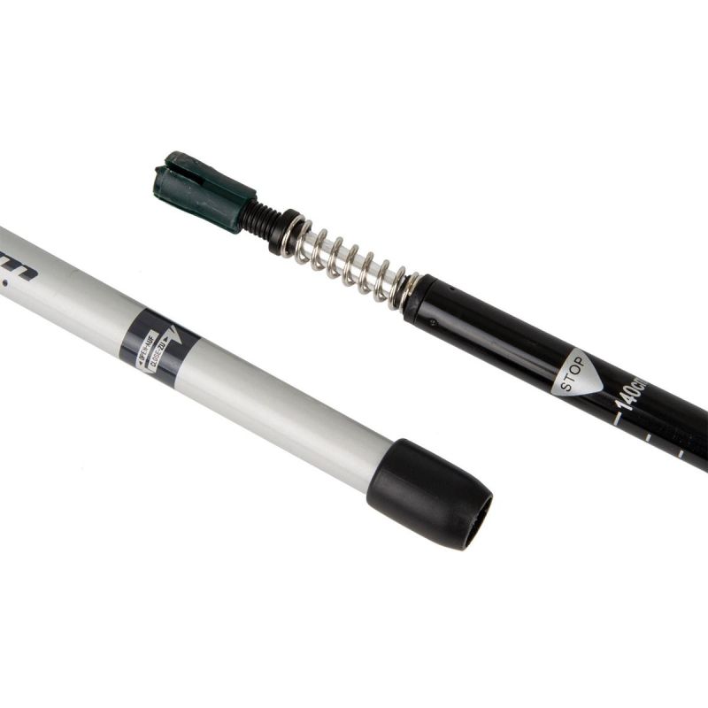 The rubber, non-slip "boots" on the NORDIC WALKING BEST SPORTING 2-SEQUENTIAL POLES will cushion and reduce the sound of hitting the ground, protect the tip, and reduce its abrasion during your workout. They work well on hard and smooth surfaces such as asphalt, concrete, and cobblestones. Even in winter, on icy surfaces, you're guaranteed stability . The rubber material is damage-resistant and suitable for long routes. The "umbrella" tips prevent the poles from digging too deeply into soft, muddy surfaces such as mud, snow, or sand. The set includes 2 poles, 2 wrist gloves with adjustable Velcro fastening, 2 types of attachments, and a connector. The poles are 2-sequential, so they extend from 84 to 140 cm.
