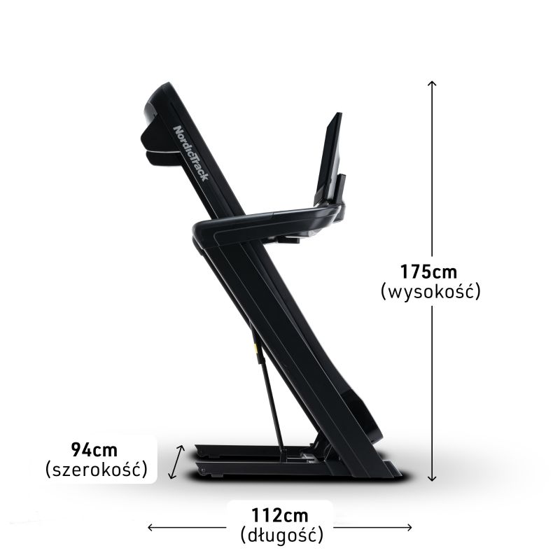 Folded treadmill dimensions: 112 x 94 x 175 cm (L x W x H)