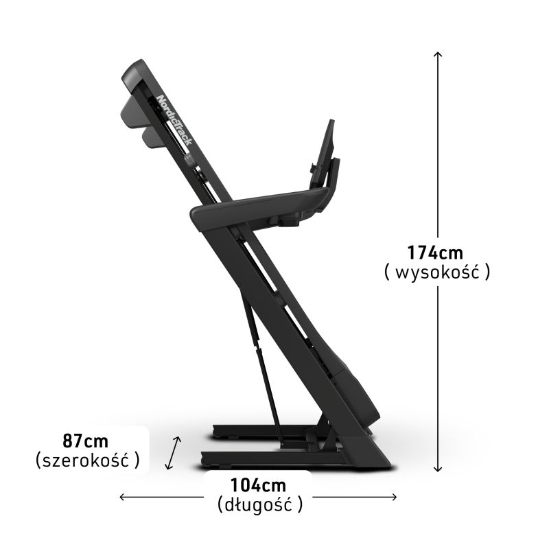 Folded treadmill dimensions: 104 x 87 x 175 cm (L x W x H)
