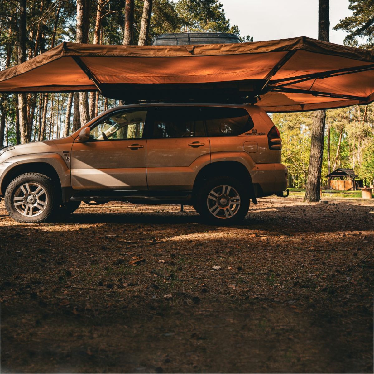 - The canopy extends 270° around the car, creating a large, shaded space where you can relax on hot days.