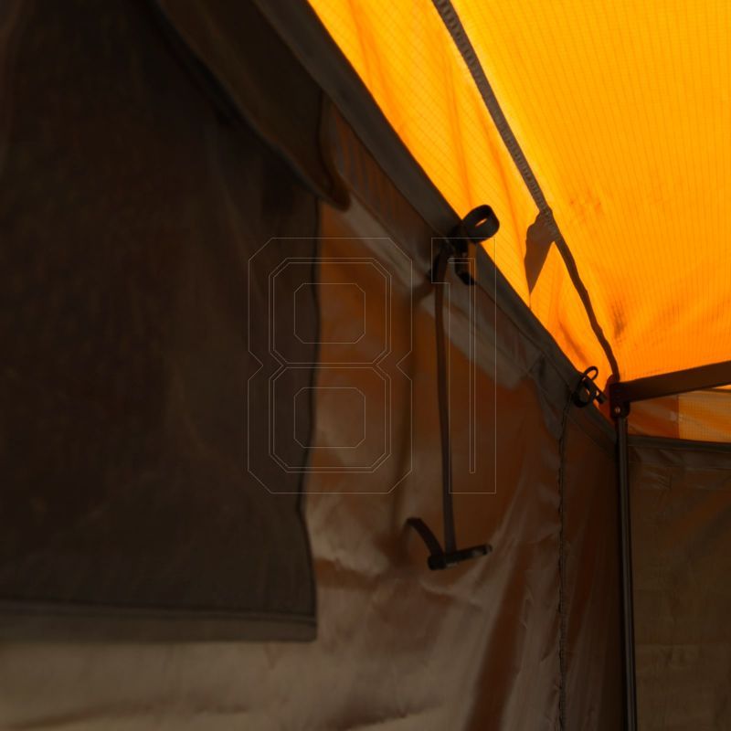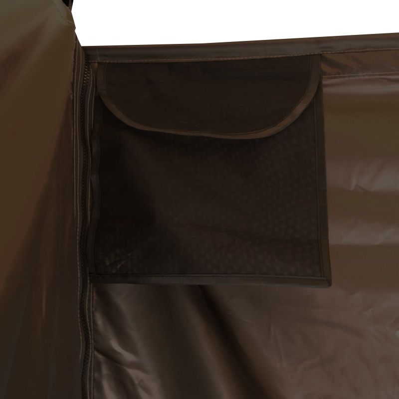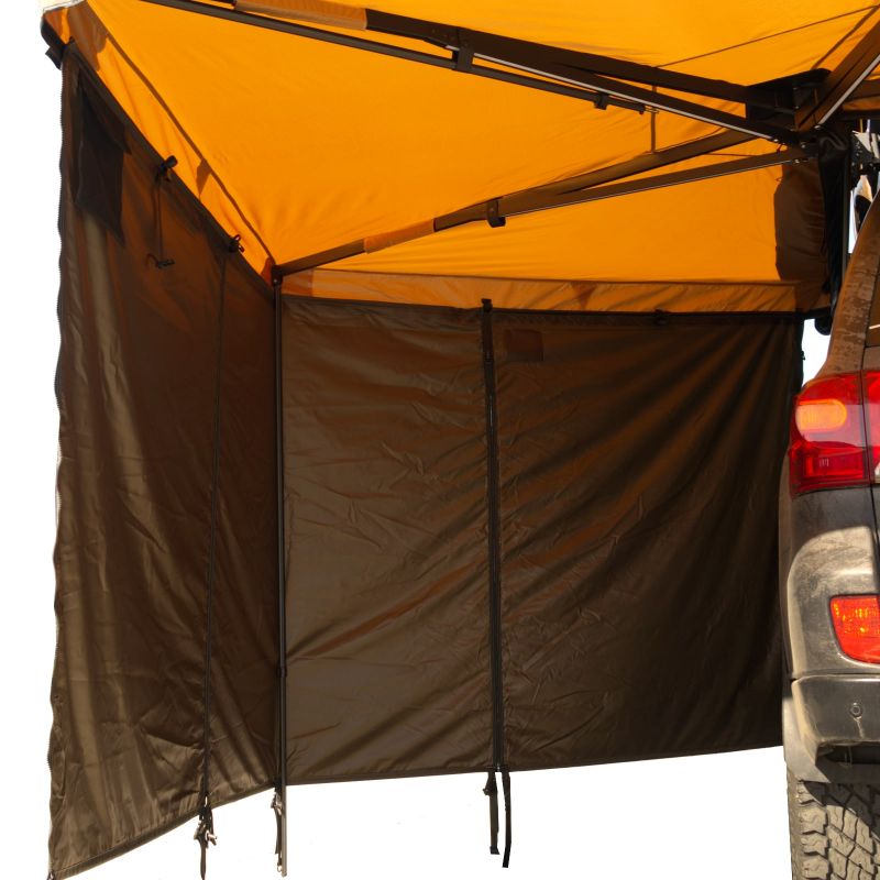 The cabin consists of three interconnected walls that can be easily hung under a self-supporting awning. This functional system allows you to quickly create a private space for a shower or changing room. Furthermore, the walls can also act as side screens for the awning, helping to separate from neighboring campsites and creating a more private relaxation area.