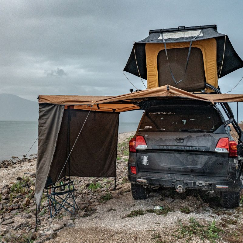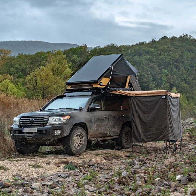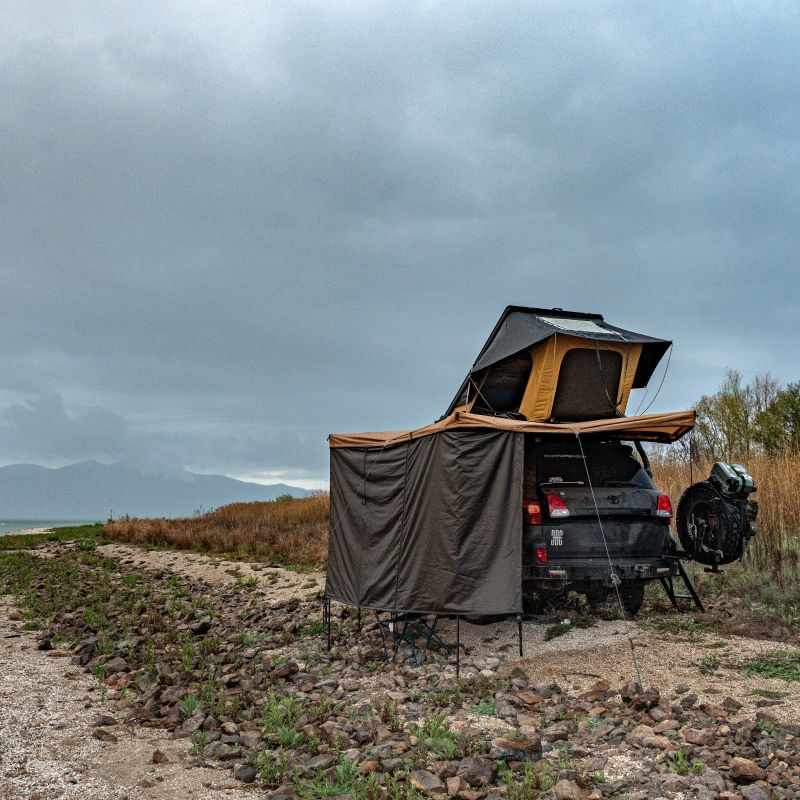 The OFFLANDER awning shower enclosure is the perfect solution for travelers who value comfort, privacy, and practicality at every stage of their trip. Made of durable, dark material, the enclosure provides 100% opaque coverage, so you can feel at ease wherever you set up camp.