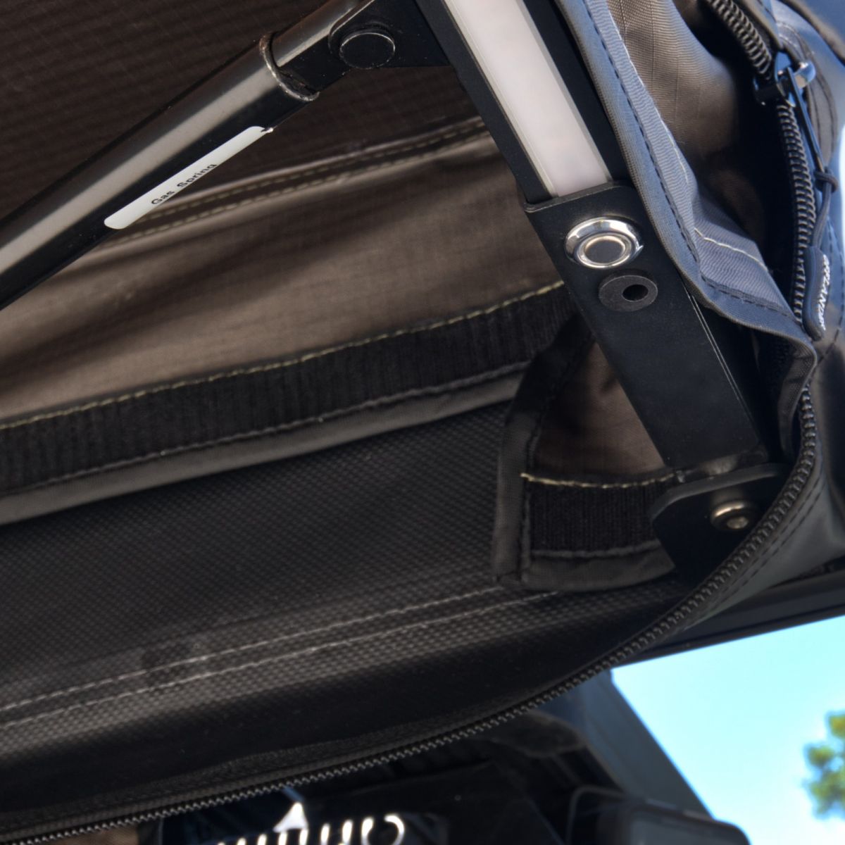 Installation is simple and intuitive – simply attach the awning to the driver's side railings using the included brackets. The awning opens quickly and safely thanks to two actuators, and the entire system can be easily set up by one person. It's the perfect solution for spontaneous stops – a few minutes and you're ready to go!