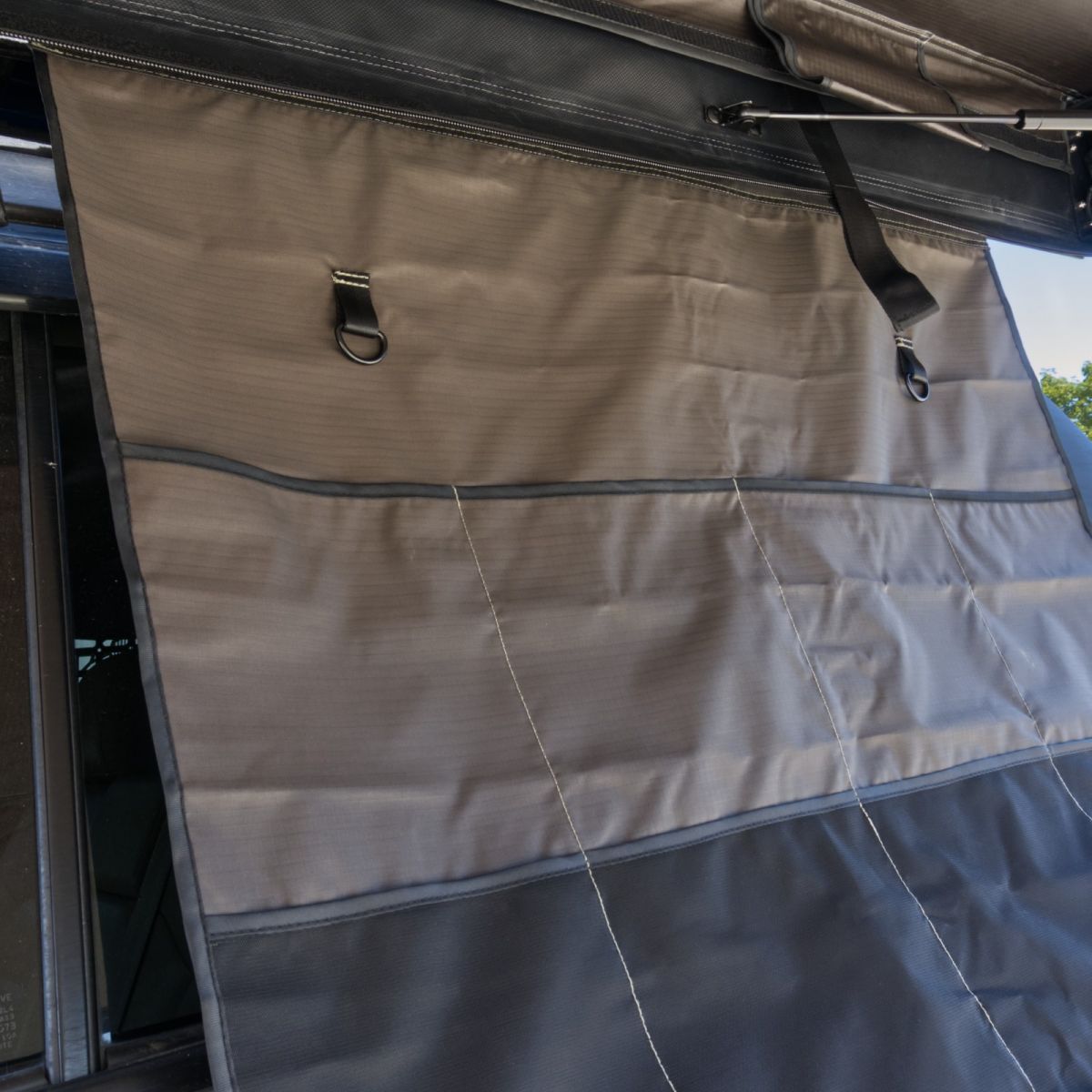 The awning is made of durable 420D Oxford fabric with a PU polyurethane coating (2000–3000 mm). This material is highly resistant to abrasion, tearing, and weather conditions such as rain, wind, and UV rays. Additional advantages include easy cleaning, mildew resistance, and flexibility even at low temperatures. This makes the awning suitable for a wide range of conditions and lasts for many seasons.