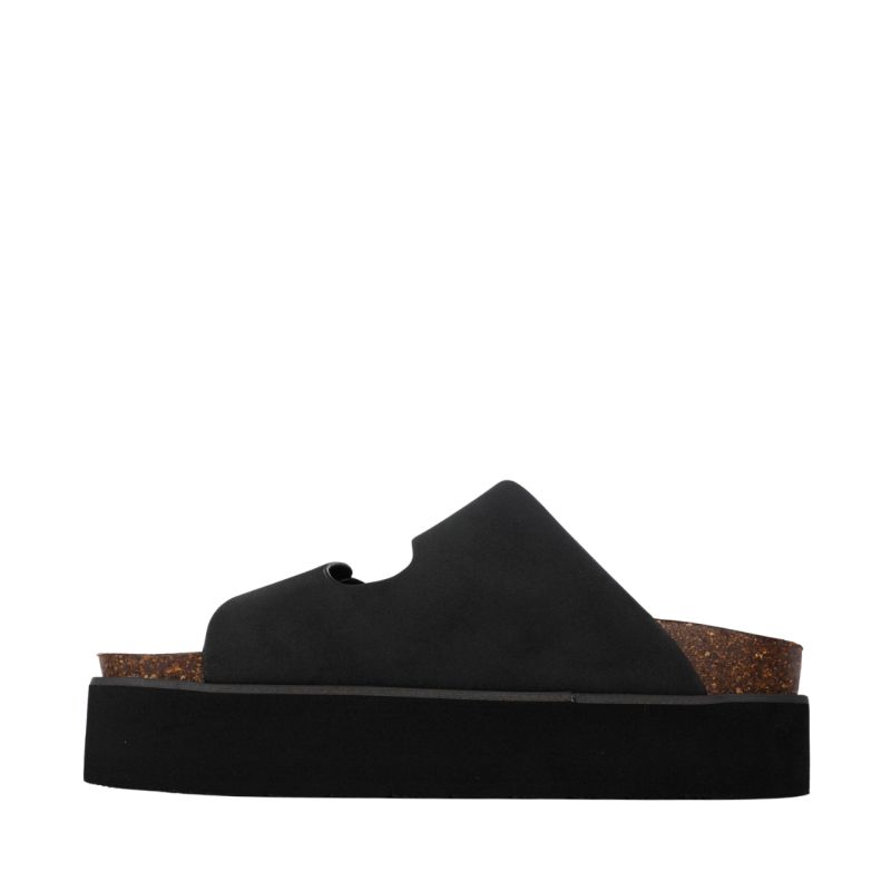 O'Neill Sandy Platform Women's Flip-Flops Black 90261042 25Y These O'Neill women's flip-flops are perfect for everyday wear. The upper is made of faux leather. The insole is cork. The outsole is platform. Rubberized tread. Adjustable buckles.
