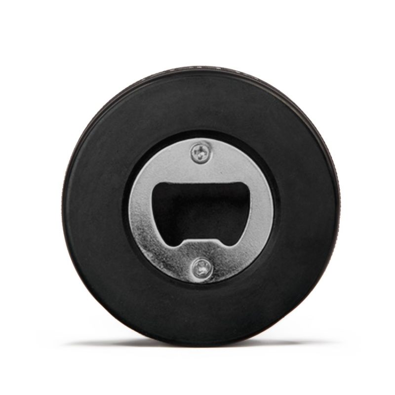 Key Features: Front of the Opener: Designed in the shape of a hockey puck with the GKS Tychy crest, the front features a subtle graphic with the words "OPEN IT!" against a gold background, adding to the gadget's elegant look. Opener Functionality: The other side of the puck features a metal opening mechanism, making it the perfect bottle opener.