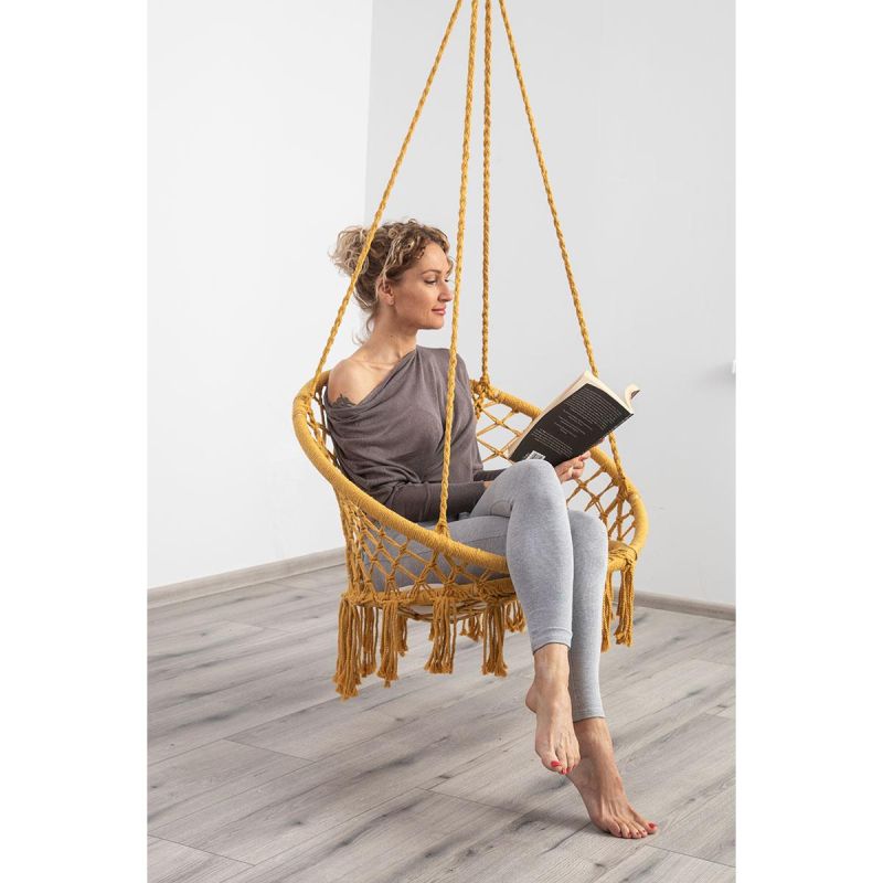The Honey Openwork Hammock Hanging Chair with Pillow will be your favorite place to relax at home, in the garden, on the terrace, or on the balcony. Create your own private oasis of peace with it.