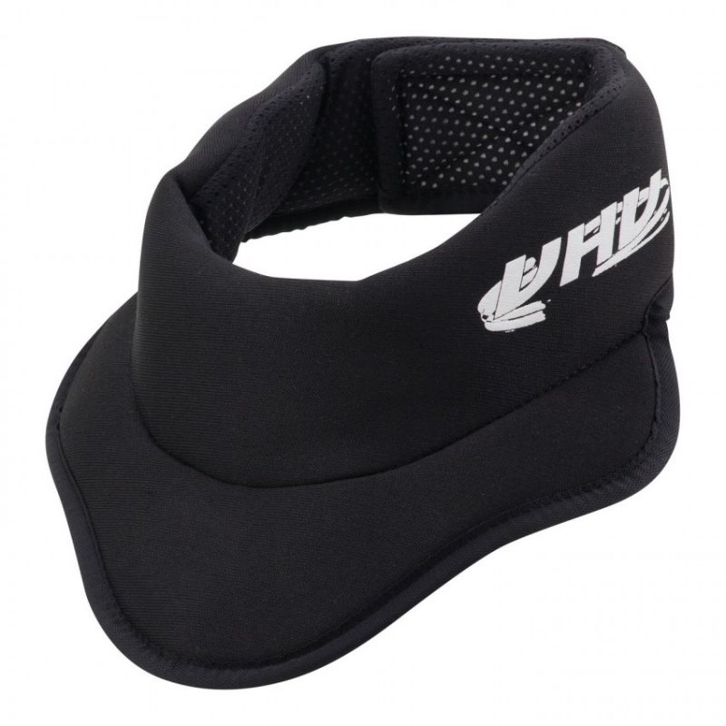 Neck protector for field players Fastened with Velcro for a better fit Insert made of durable polyester Interior made of high-quality foam Protects the neck against cuts, stick or puck impacts Equipped with a bib Size: Junior Neck circumference: S/M (36 - 38 cm) L/XL (38 - 40 cm) Height: S/M (130-145 cm) L/XL (140 - 170 cm)