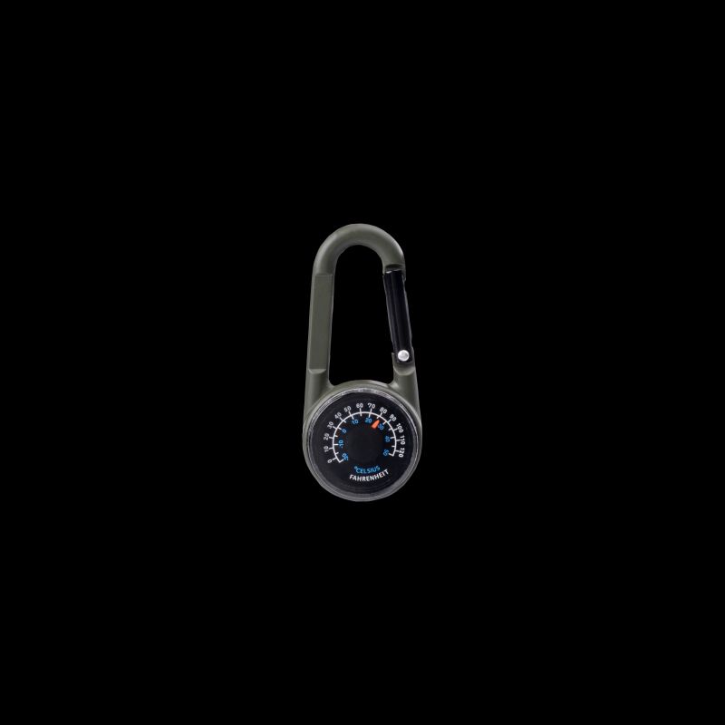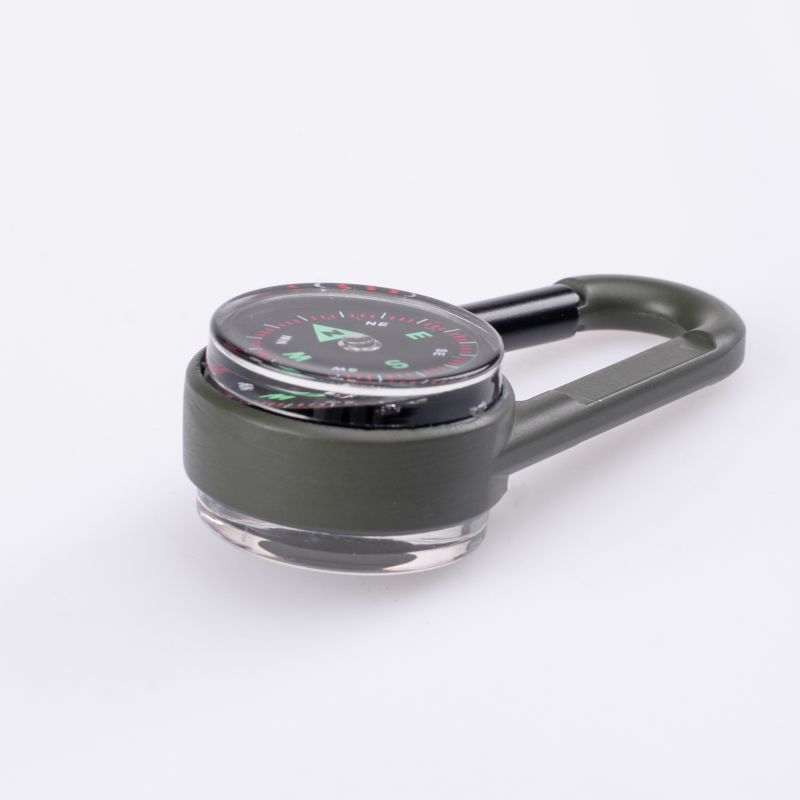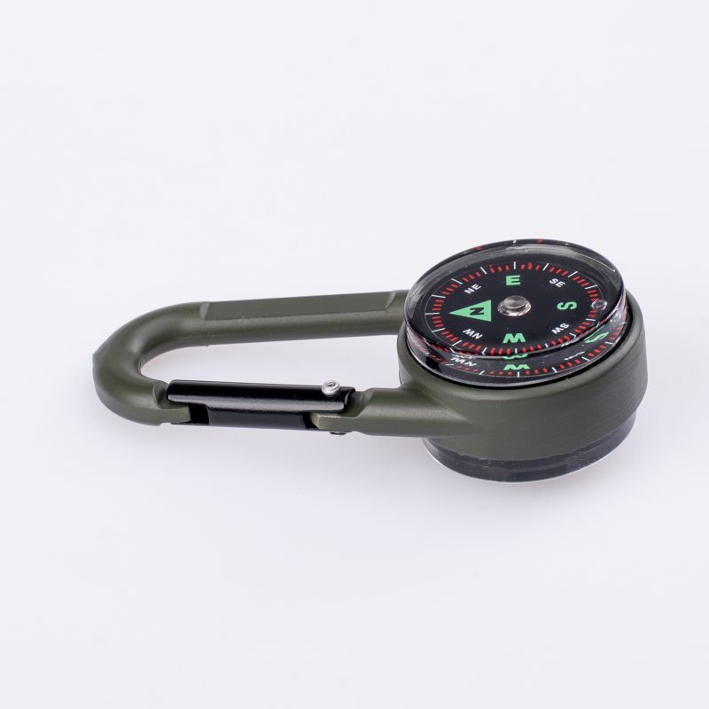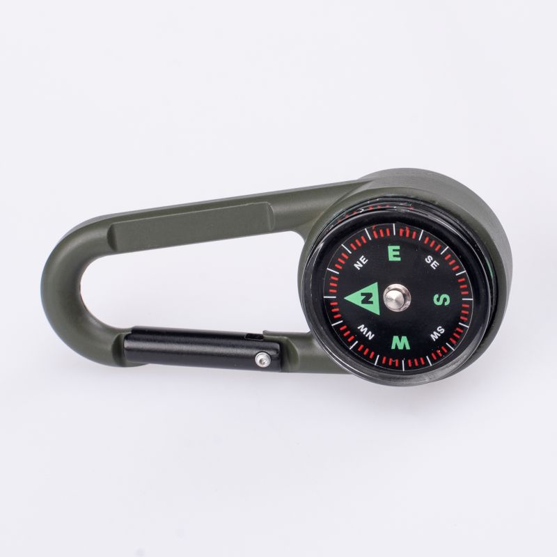 COMPASS DIMENSIONS: 6.9 x 3 x 1.9 cm WEIGHT: 30 g MATERIAL COMPOSITION: BUCKLE: ZINC ALLOY DIAL COVER: ACRYLIC DIAL: PVC COMPASS: ABS THERMOMETER BASE: ABS SPECIFICATIONS: - FUNCTIONS: COMPASS, THERMOMETER, CLIMBING CARABINER - LIGHTWEIGHT - EASY TO CARRY