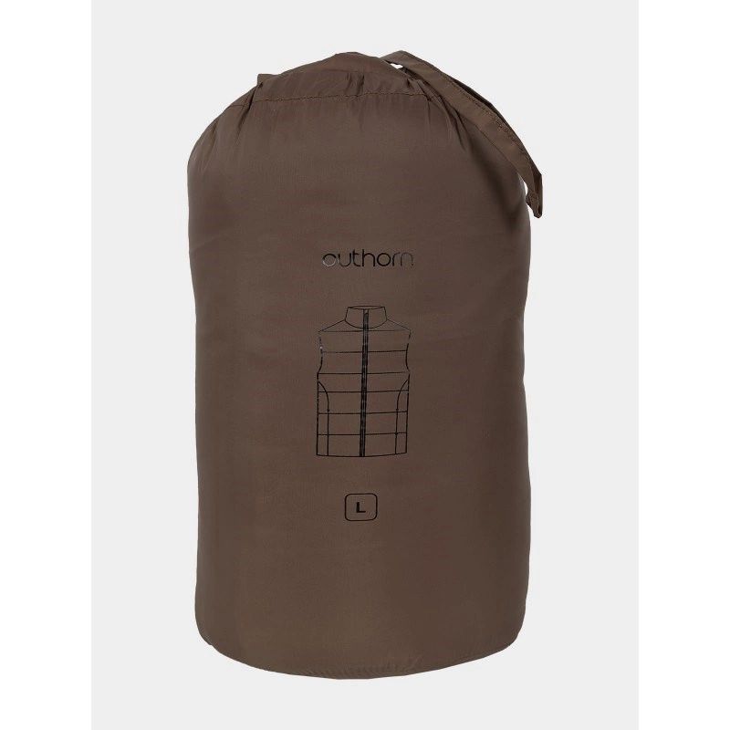 A stand-up collar protects against wind and cold. Two side pockets with zippers and an internal Velcro pocket. The main zipper closure features an internal placket with a chin guard. Packable into the included stuff sack. Synthetic down filling is more durable and easier to care for than natural down. A synthetic down vest retains its insulating properties for longer, even when exposed to moisture, and dries much faster. Furthermore, it doesn't require complicated washing and drying processes. The down vest also has a water-repellent impregnation that protects against light precipitation.