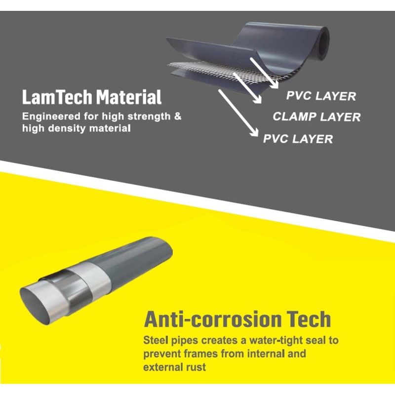 The pool features a reinforced frame with ANTI-CORROSION technology, providing excellent protection against rust and moisture damage. This ensures the pool maintains its durability and aesthetic appeal even after many seasons of use.