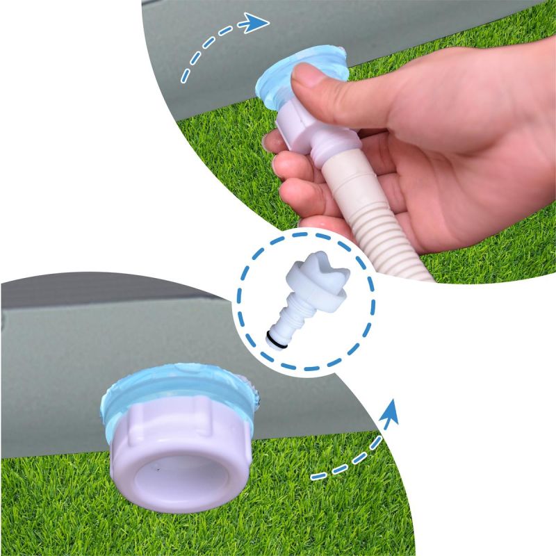 The pool is equipped with 32mm diameter connections that allow for the connection of standard filter pumps and sand filter systems. This ensures constant water circulation and impeccable water purity throughout its life.