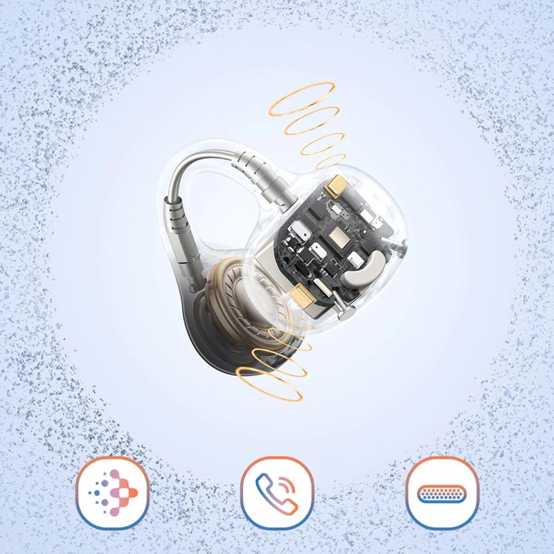 The Baseus Bass BC1 are wireless OWS earphones with a clip that combine an open design with a secure and comfortable fit. Their lightweight design and flexible earpiece ensure hours of comfort, while the clear sound with powerful bass energizes your favorite music. The open design allows you to listen while maintaining contact with your surroundings – at work, on a walk, or during a workout.
