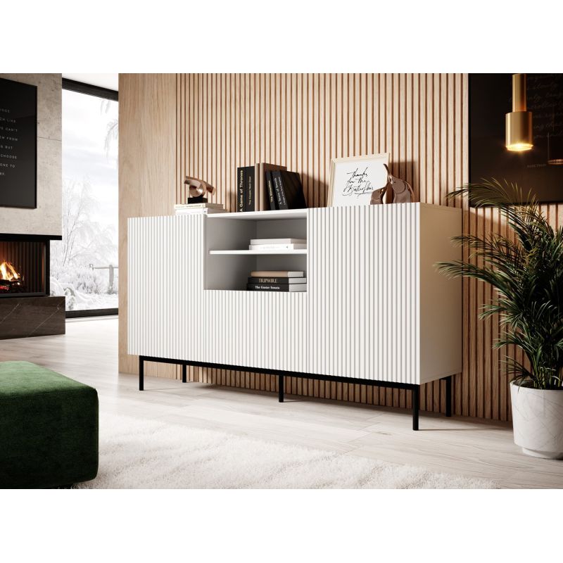 PAFOS chest of drawers on a black steel frame, 150x40x90, white matt