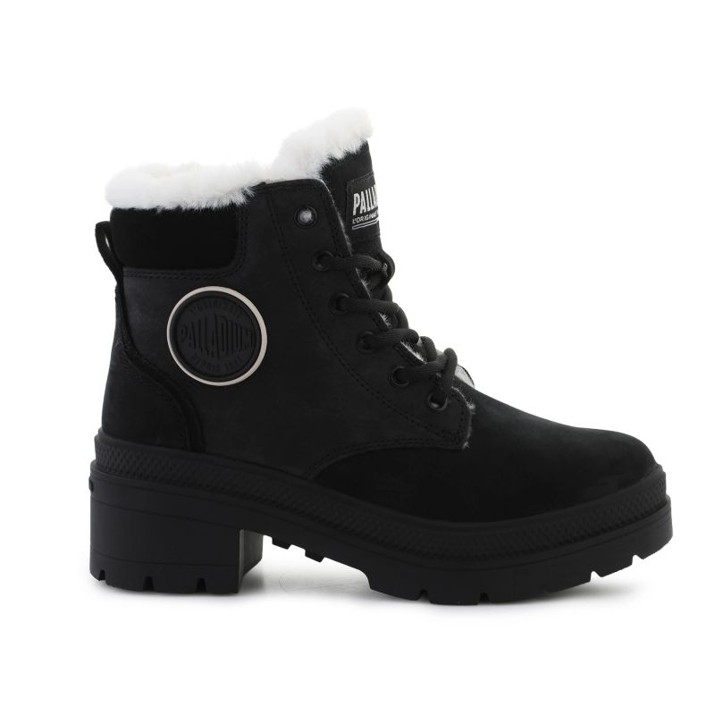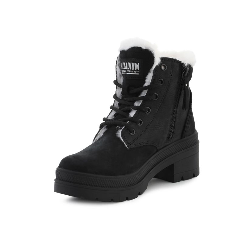 The Palladium PALLARISE NBK WL is a tall women's ankle boot designed for cold days. The upper is made of natural nubuck, ensuring durability and elegance. Inside, it's lined with soft, synthetic fur, which effectively insulates against the cold.