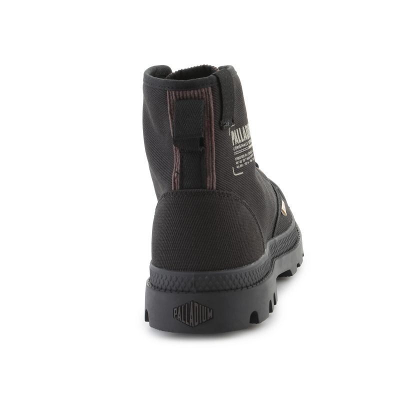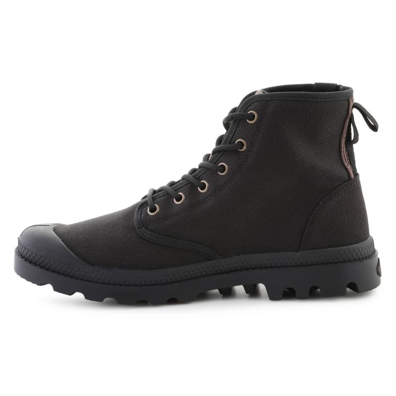 The Palladium Pampa Michigan 79496-008-M Black combines classic Pampa style with a modern urban footwear feel. The upper is crafted from high-quality canvas , ensuring breathability and durability while giving the shoe a raw, authentic look. A reinforced toe and stable rubber outsole guarantee protection and a confident stride in all conditions.