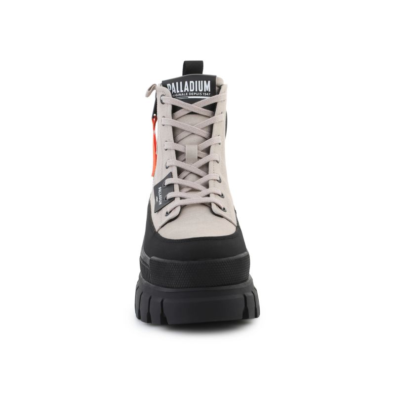 The Palladium Revolt Boot Zip TX 98860-270-M in String is a model designed in a modern streetwear style, combining technical finishing with a distinctive silhouette. The upper is made of 100% moleskin textile, which is characterized by softness and durability. The material provides a distinctive matte look and comfort. Fastening consists of traditional flat laces and a practical side zipper, allowing for quick on and off.