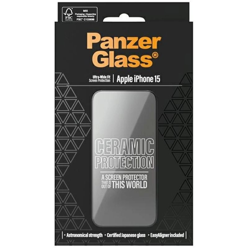 PanzerGlass Ceramic Protection ceramic glass for iPhone 15 with positioner