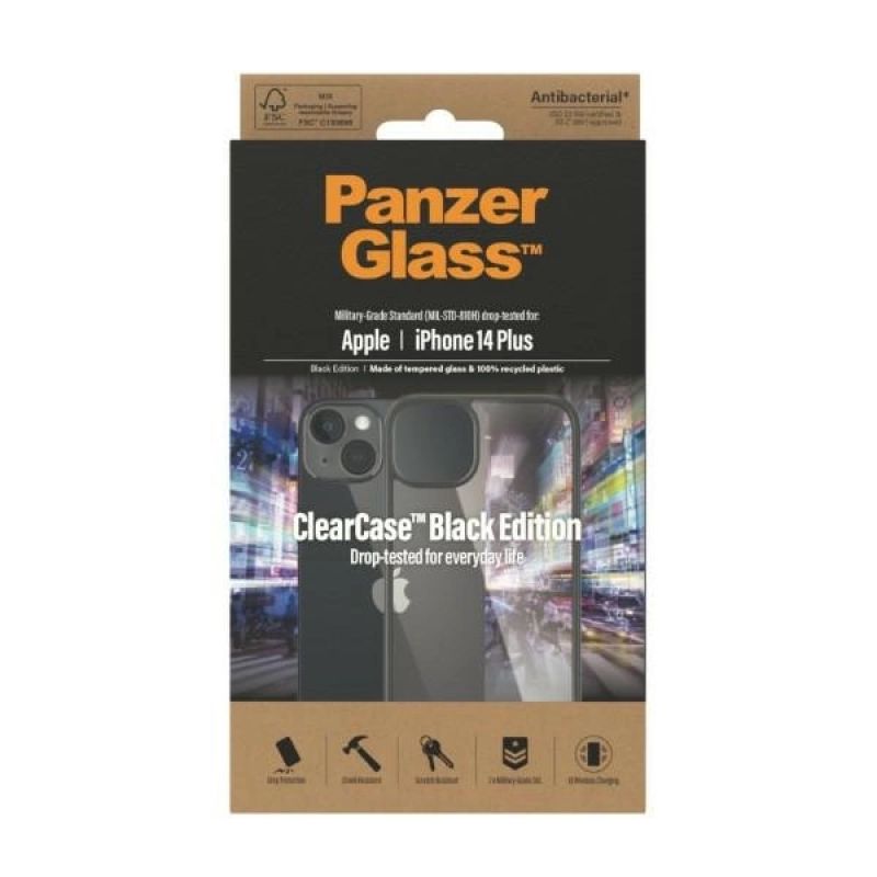 PanzerGlass ClearCase antibacterial case for iPhone 14 Plus / 15 Plus - transparent and black