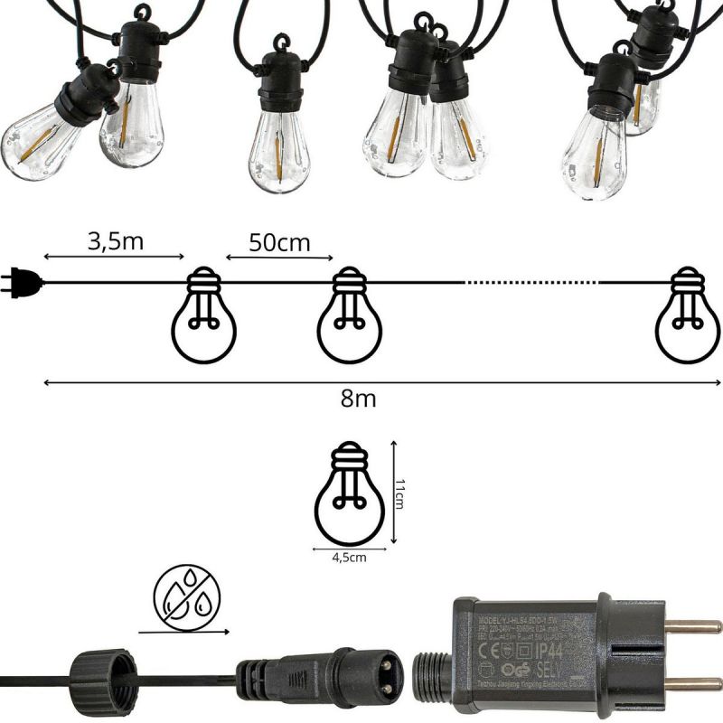 PARTY LIGHT OUTDOOR GARLAND 10 BULBS 10LED 8M 230V