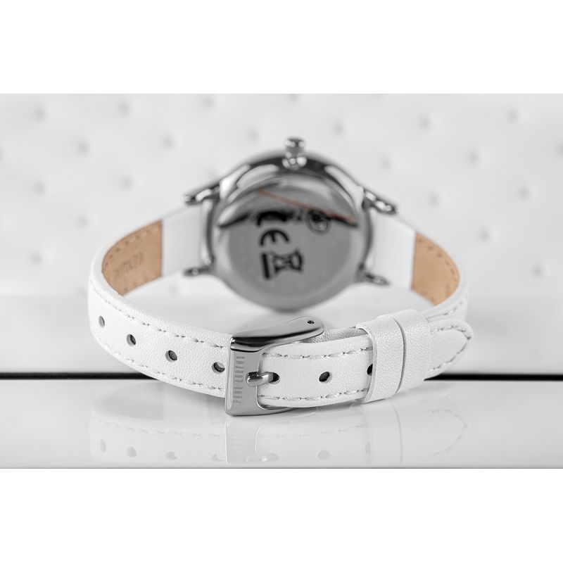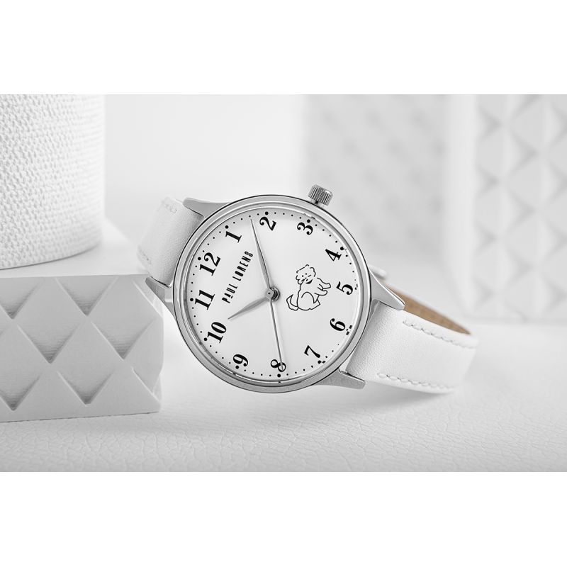 The silver case harmoniously complements the white dial, which features an adorable puppy, adding a playful touch to the watch. This subtle graphic makes the watch a unique, personal accessory your little one will be proud to wear. Silver hands and indices add elegance, while the cleverly designed seconds hand, moving gracefully, will make learning to tell time a joyful and exciting adventure.