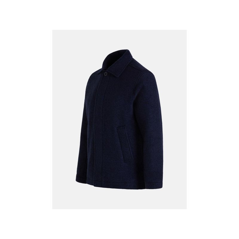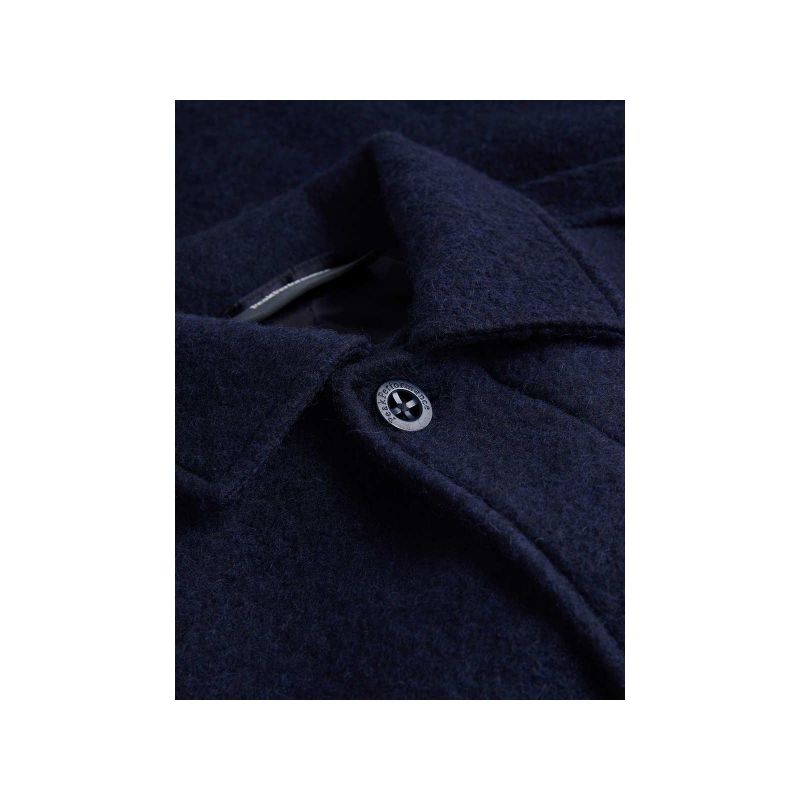 The M Wool Shirt men's jacket, with a modern cut, is crafted from a thick Italian wool blend. It features an exceptionally soft inner lining. It's perfect for autumn and winter days. It fastens with hidden snaps.