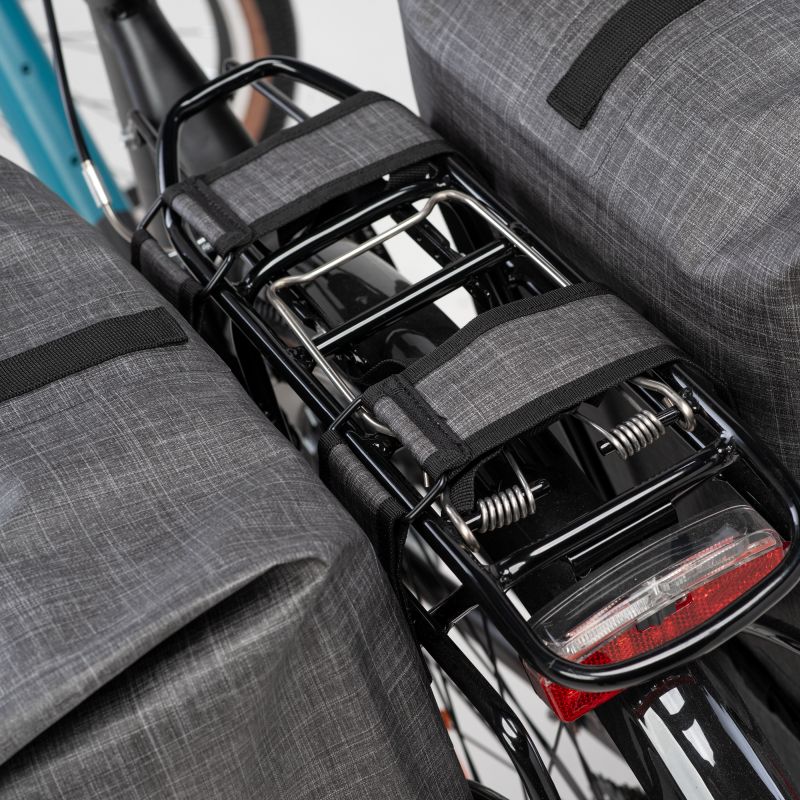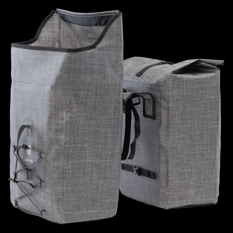 BIKE BAG CAPACITY: 2 x 21 l SIZE: UNIVERSAL DIMENSIONS: 38 x 33 x 17 cm MATERIAL COMPOSITION: OUTER MATERIAL: 80% PVC, 20% POLYESTER