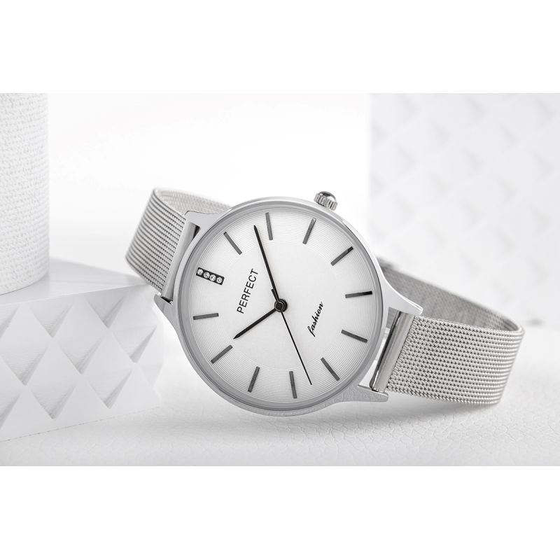 The rhinestones on the dial of the Perfect women's watch are a striking detail that adds elegance and sparkle. Their subtle setting in the dial gives the watch a luxurious look while also attracting attention with their shimmer. This makes the watch not only a functional accessory but also an elegant piece of jewelry.