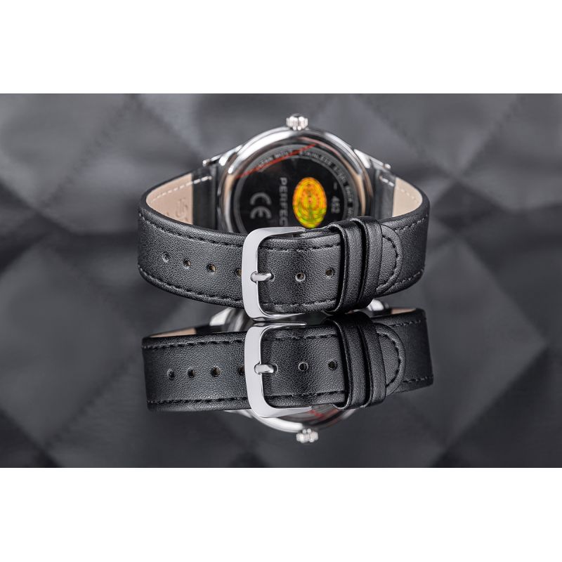 The leather strap on this watch is the epitome of class and comfort. Crafted from the highest quality material, it comfortably fits the wrist, offering not only durability but also an elegant look. Its softness ensures comfort for everyday wear, while its impeccable finish highlights the signature style of the Perfect brand.
