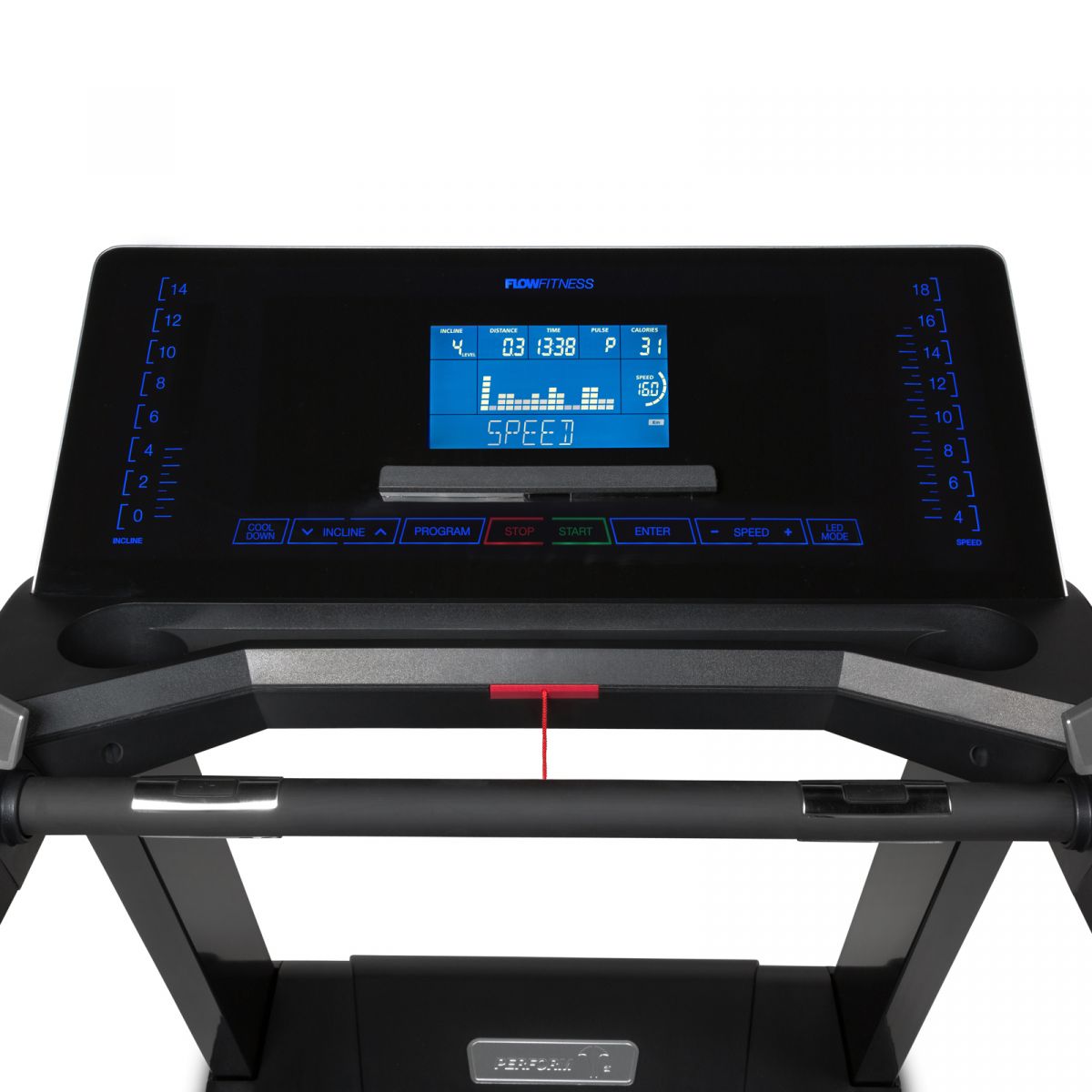The T3i electric treadmill from Flow Fitness is the highest-quality member of the Perform series. The T3i is the perfect choice for anyone looking for a durable, powerful treadmill that will last for years. It's undoubtedly a premium machine, with a 9-inch LCD touchscreen, the largest treadmill surface on the market, a durable 3 HP motor, 15 incline levels, and a maximum user weight of 200 kg. Additionally, apps available for both iOS and Android enhance your workouts and allow you to run "around the world."
