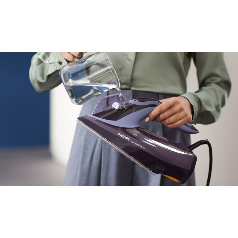 Vertical steam jet allows ironing of hanging fabrics: Yes