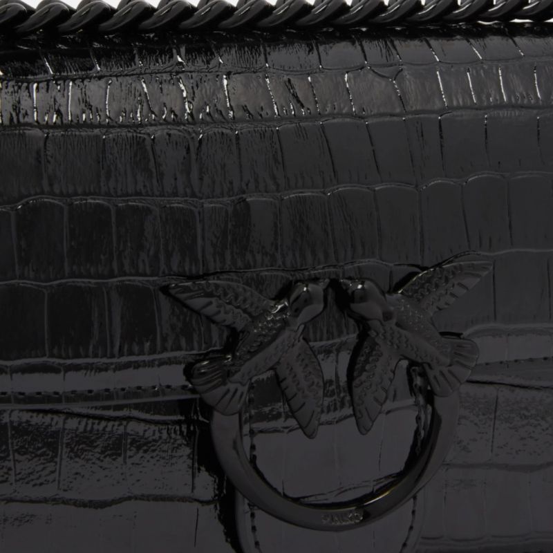 - Love One Mini Bag shoulder bag made of genuine crocodile-like leather with a black patent leather effect finish.