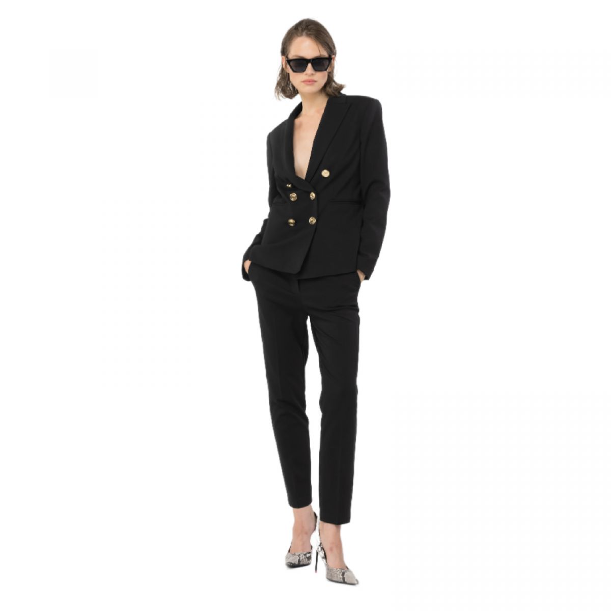 - Stretchy cigarette trousers made of technical viscose fabric with a plain weave.
