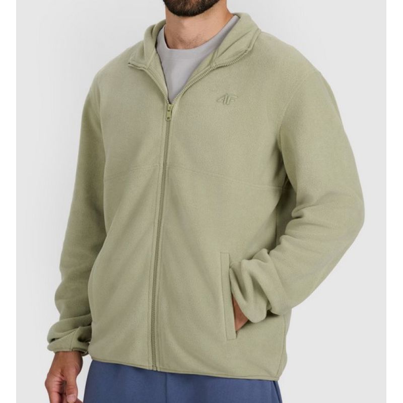 Men's 4F fleece is a versatile solution for a variety of conditions. The thick, pleasant-to-the-touch material is easy to care for and dries quickly when exposed to moisture. The fleece has hydrophobic properties. Due to its construction, it resists wrinkles and retains its shape for many seasons. 4FWarm technology offers thermal properties. The fleece is perfect as a top layer or as an insulating layer on cool days in the transition period and in winter. The standard cut with a stand-up collar and a traditional hip-length length drapes naturally on the body. Technical data: Main material: 100% polyester Warm microfleece inside - ensures thermal comfort on cold days Regular cut - comfortable fit without restricting movement Weight 280 gsm - medium material thickness Standard cut - hip length for everyday comfort Solid colors - easy to combine with other items of clothing Stand-up collar - additional protection against cold 2 open side pockets - practical space for small items One-way main zipper - easy to put on and take off Sleeves and bottom finished with piping - neat and durable finish 4FWarm technology - helps maintain optimal body temperature
