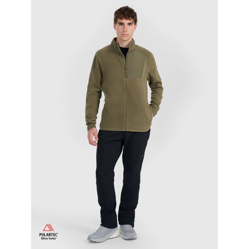 Men's Polartec fleece made from recycled material is a functional layer that's perfect for any time you need lightweight, breathable insulation. Polartec® fabric effectively insulates heat while wicking moisture, ensuring comfort during both activity and everyday wear. Its midweight makes it an ideal midlayer under a jacket, and the use of recycled material is a conscious choice that supports sustainable production. The regular fit, stand-up collar, and elastic trims guarantee comfort and protection from the cold in all conditions.