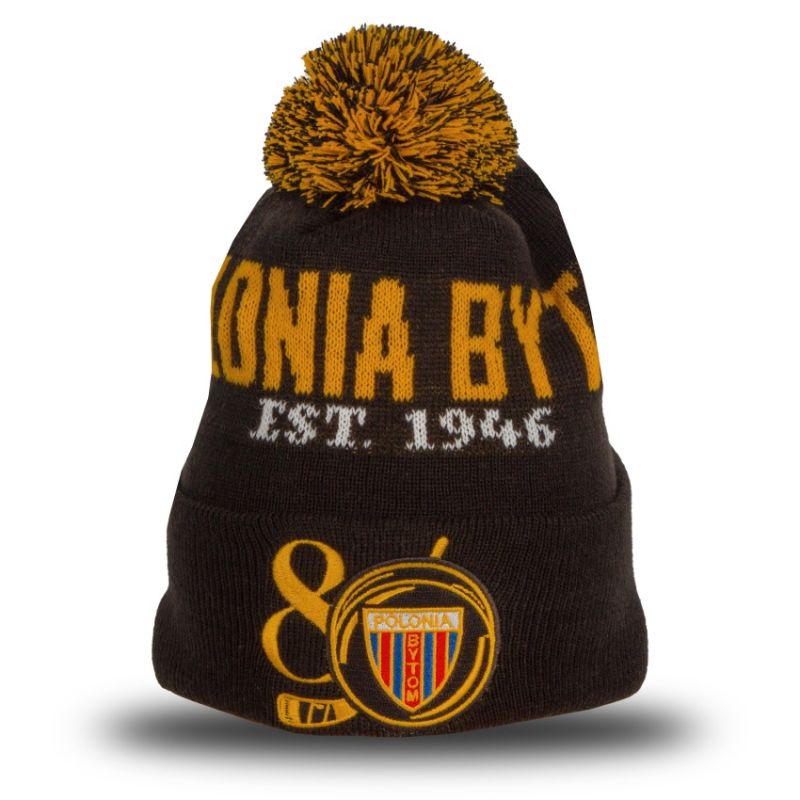 Polonia Bytom Winter Hat – 80 Years of Hockey. Warmth, style, and club tradition in this anniversary edition! The Polonia Bytom anniversary winter hat was created to celebrate 80 years of hockey in Bytom. The classic, fan-friendly design with a pom-pom in club colors is perfect for winter matches, away days, and everyday wear. Featuring an elegant black and gold color scheme, the hat features a prominent "Polonia Bytom Est. 1946" inscription and the 80 Years of Hockey anniversary logo with the club crest. Embroidered details give the hat a prestigious and durable feel. Key features: Official anniversary edition: A cap commemorating 80 years of Polonia Bytom hockey. Classic cut with a pom-pom: A traditional fan style, perfect for winter days. Embroidered elements: Durable and aesthetically pleasing finish with the anniversary logo and inscription. Warm and flexible material: Soft, pleasant-to-touch fabric provides comfort and protection from the cold. One size fits all: Flexible construction conforms to the shape of your head. Colors: Black/Gold. The Polonia Bytom – 80 Years of Hockey Winter Hat is a must-have winter wardrobe item for every fan who wants to proudly represent their club off the ice.