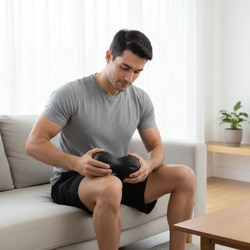 This massager is useful for everyone. It can be used to relax muscles, warm them up, and prepare them for physical activity. It's battery-powered, providing up to 50 minutes of continuous use per charge. The massager comes with a special drawstring pouch that allows for massaging hard-to-reach areas.