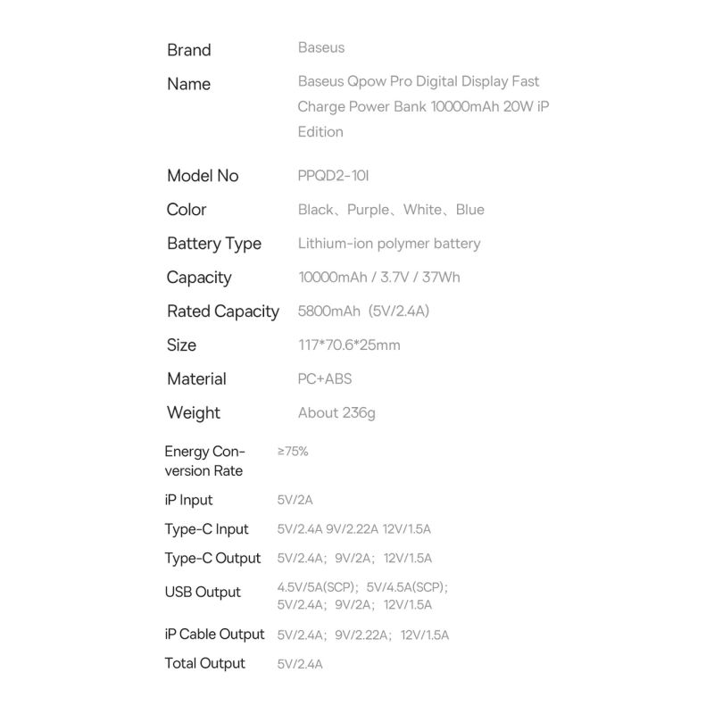 Do you have many devices that you use every day? Traveling or away from a permanent power source? The Baseus Qpow Pro powerbank is the perfect solution for you. The device not only has an interesting and elegant finish, but also has very good parameters. The product is equipped with 3 different types of connectors such as USB-A, USB-C and Lightning. Thanks to this, you can charge several devices at the same time with a total power of 20W. The set includes a USB C 3A 0.3m power cable.