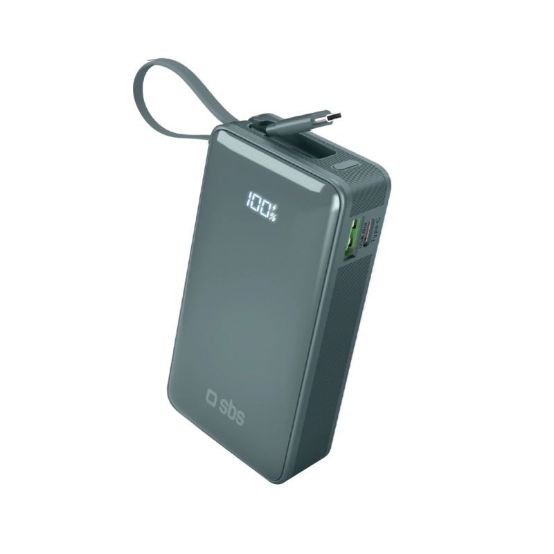 Powerbank SBS 10000 mAh 20W with built-in USB-C cable and digital display - gray