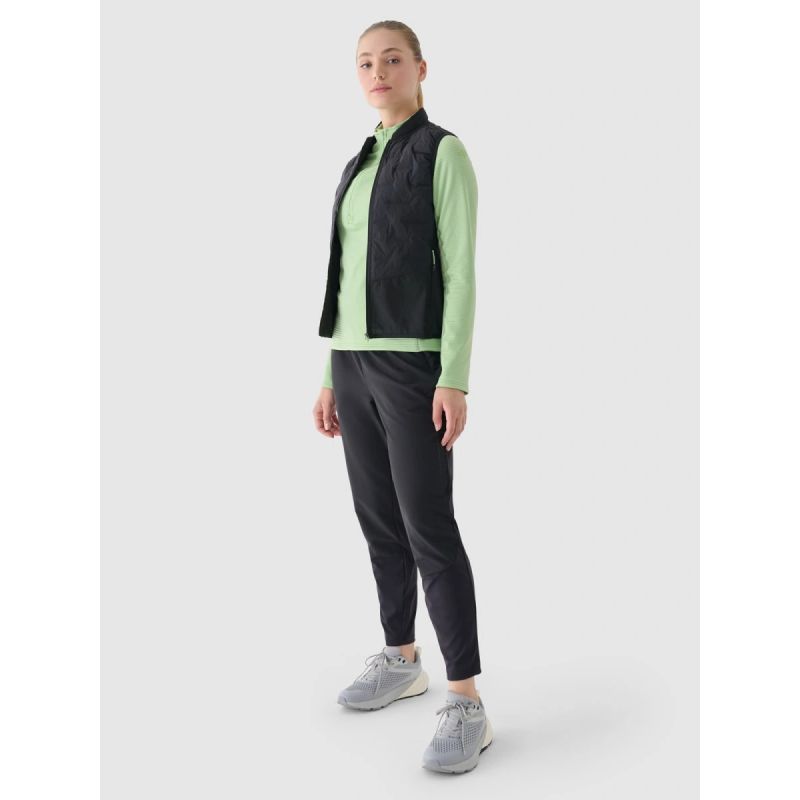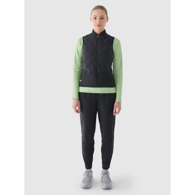 The women's 4F Running Vest is an ultralight outer layer designed for running and training in warmer weather, where comfort, protection, and freedom of movement are key. A slim fit and standard hip length provide an aerodynamic fit and stability during activity. Breathable, water-repellent fabric effectively wicks moisture, prevents overheating , and protects in sudden changes in the weather. PrimaLoft® Silver insulation offers efficient warmth with minimal weight, retaining its properties even in damp conditions. A quick-drying 4FDry finish helps keep you dry during exercise, while the eco-friendly Bionic Finish® Eco (PFC-free) treatment increases water and dirt resistance without compromising breathability. Functional details—zip pockets, reflective elements, and the ability to pack the vest into its internal pocket—make it a reliable support for any distance.