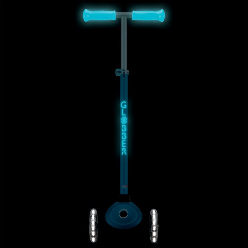 Riding day or night looks great: the PRIMO PLUS LIGHTS GLOW features glow-in-the-dark elements on the T-bar, deck, and brake. Simply dim the lights and the scooter will "glow" with vibrant colors, making a statement at every turn.