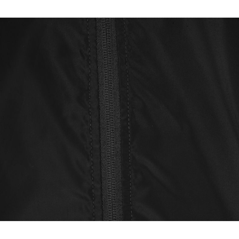 - There is a hood in the collar that can be hidden in a small zippered pocket