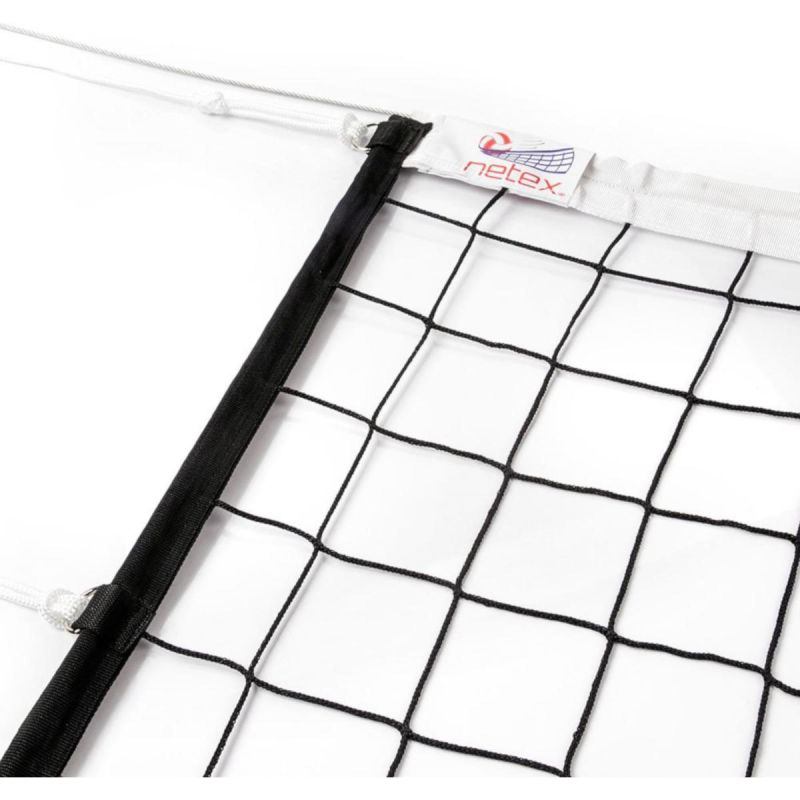 Professional black knotless volleyball net made of high-strength polypropylene. The net features 7cm-wide top and 5cm-wide bottom reinforcements. It also features side stiffeners that ensure the net is uniformly wide along its entire length. Tension cords are located in three places. The net comes with two antennas and antenna mounting covers.