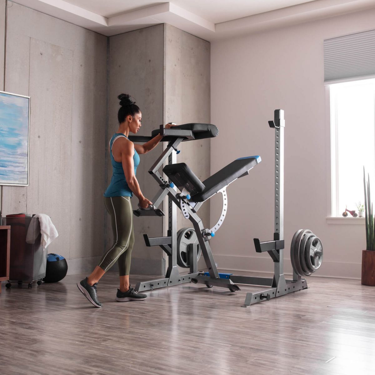 - The bench itself offers many possibilities, and when combined with accessories such as a preacher bench, leg rests, or space for dumbbells and a barbell, it allows you to do a full workout like at a classic gym in your own home, while keeping things tidy.