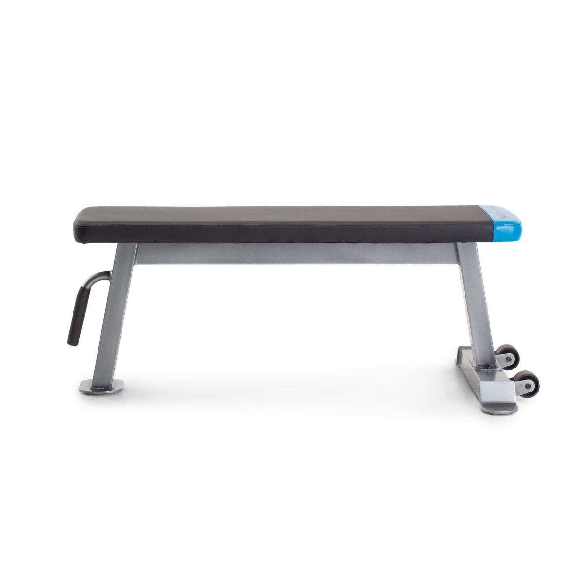 - The bench is upholstered in foam and an aesthetically pleasing, modern fabric. Blue inserts with the Proform logo make the product even more attractive. A handle and wheels allow you to quickly and easily move the bench.