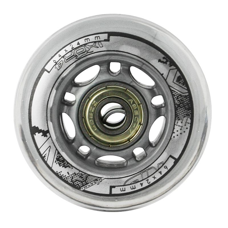 PU CLEAR NILS EXTREME wheels are made of polyurethane. The most important wheel parameters are hardness and diameter. Wheel hardness determines both ride comfort and grip. PU-82A wheels provide good shock absorption and excellent adaptability to any surface. Wheel diameter directly affects riding speed. Larger diameter wheels allow for higher speeds, but do not guarantee as much maneuverability as smaller diameter wheels.