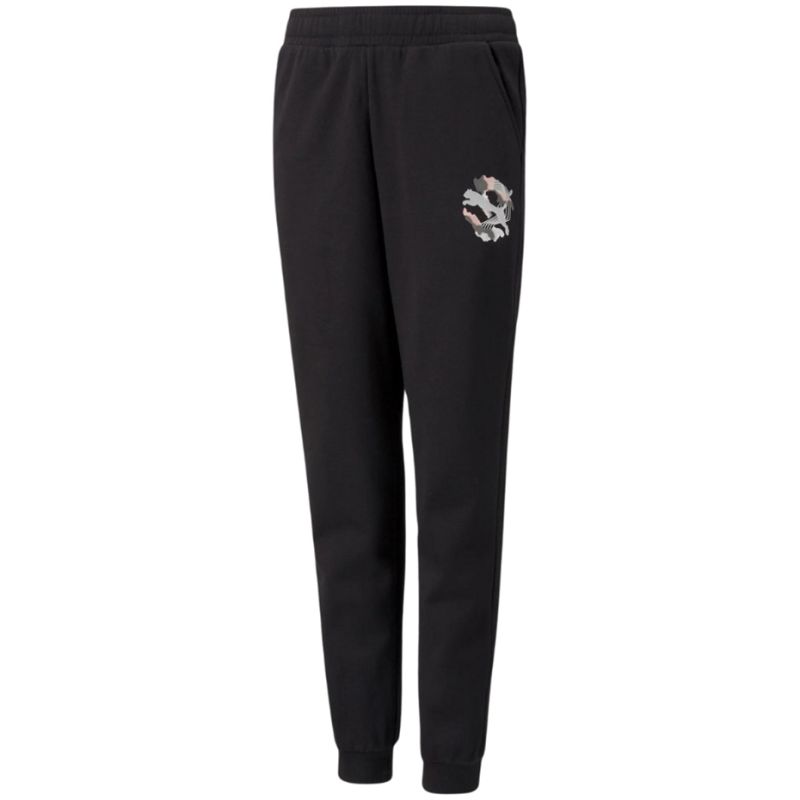 Puma kids' pants are the definition of comfort. These minimalist-style pants feature a soft, high-cotton construction that prevents irritation and promotes natural body ventilation. Polyester fibers enhance durability. They feature an elastic waistband with a drawstring adjustment. Side pockets for small items. Elasticated cuffs. They come in black with an eye-catching graphic on the leg.