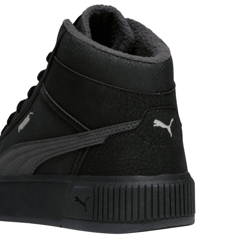 Puma Carina Mia Mid WTR Women's Shoes Black 403584 03 Puma women's shoes are perfect for everyday wear. Mid-height synthetic leather upper. Classic lacing. Insulated lining. Perforations. Soft SoftFoam+ insole. Construction sits on a raised platform. Rubber, grippy tread.