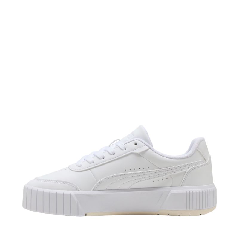 Puma Carina Mia Topcat 406064 02 Women's Shoes. These Puma women's shoes are perfect for everyday wear. The upper is made of synthetic leather. Classic lacing. The interior is lined with textile material. A soft Softfoam+ insole. Additional perforations are located on the front and sides. The sole is on a raised platform. A rubber tread completes the look.